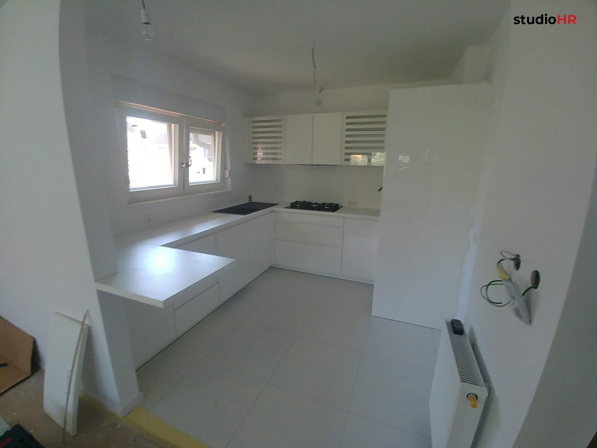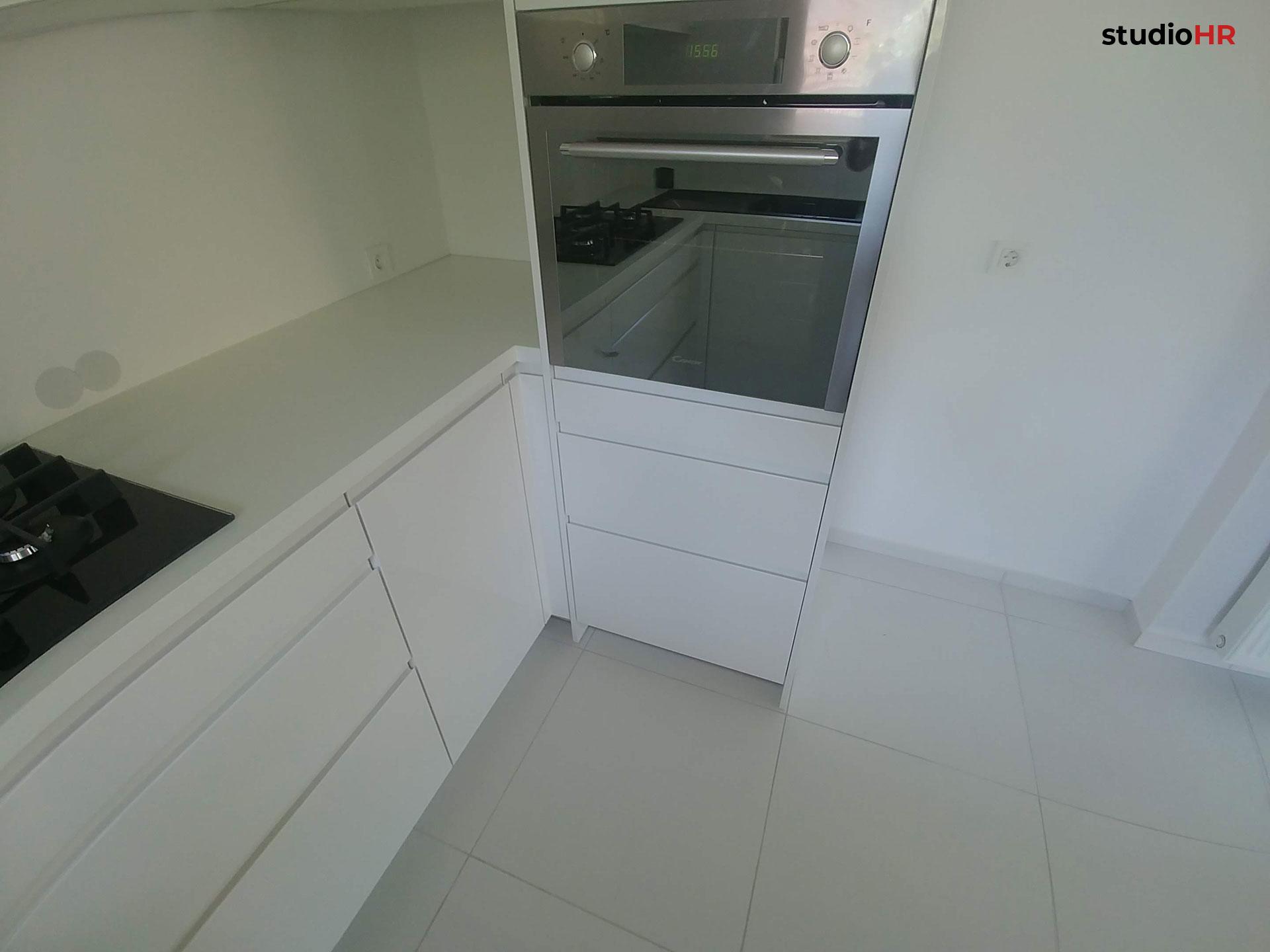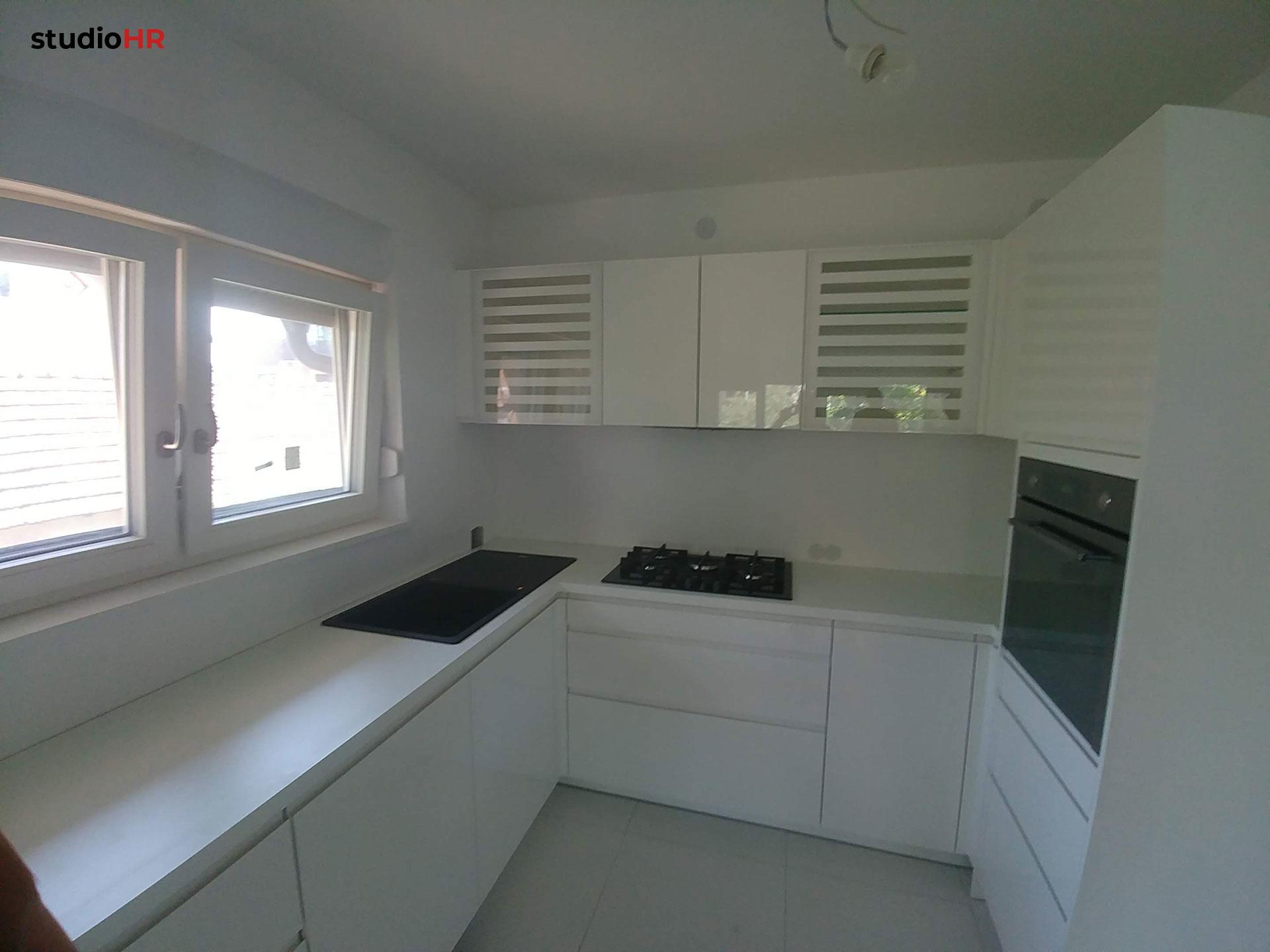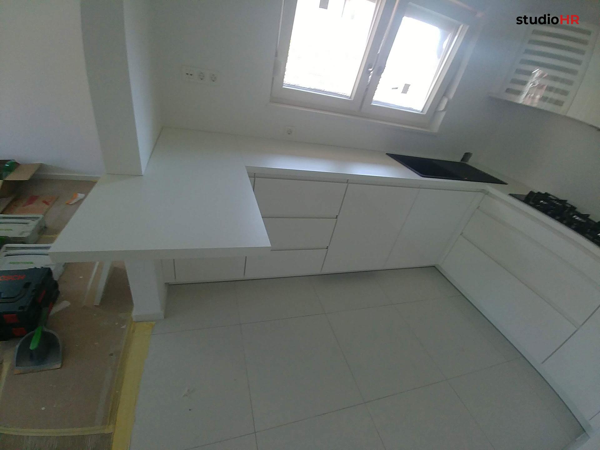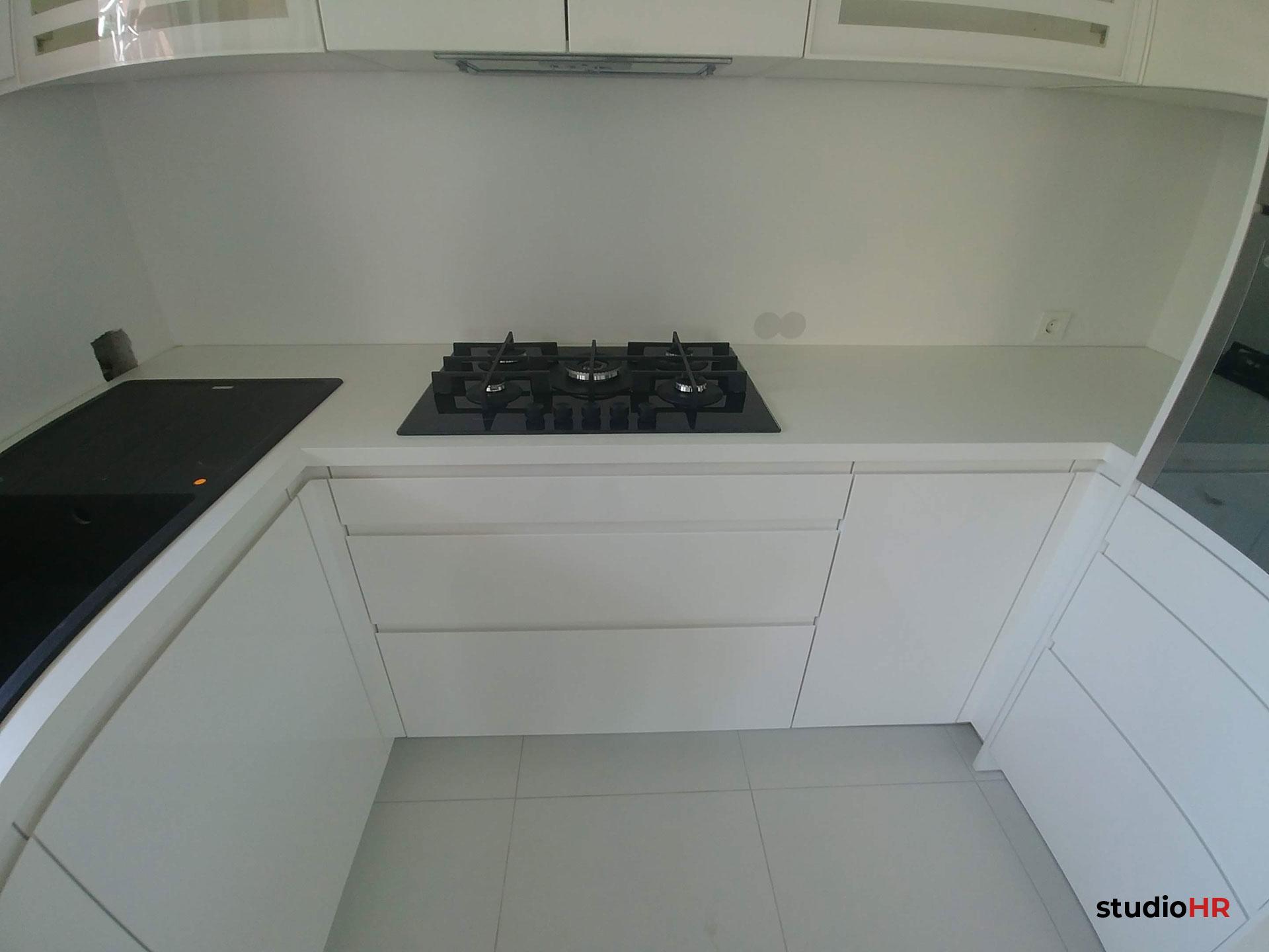 Kuhinja je izvedena u Seville programu s elegantnim, ravnim frontama u svijetloj boji, koje vizualno povećavaju prostor i doprinose čistom, suvremenom izgledu. Površine su odabrane s fokusom na otpornost, jednostavno održavanje i dugotrajnost, uz preciznu obradu svih spojeva i rubova.