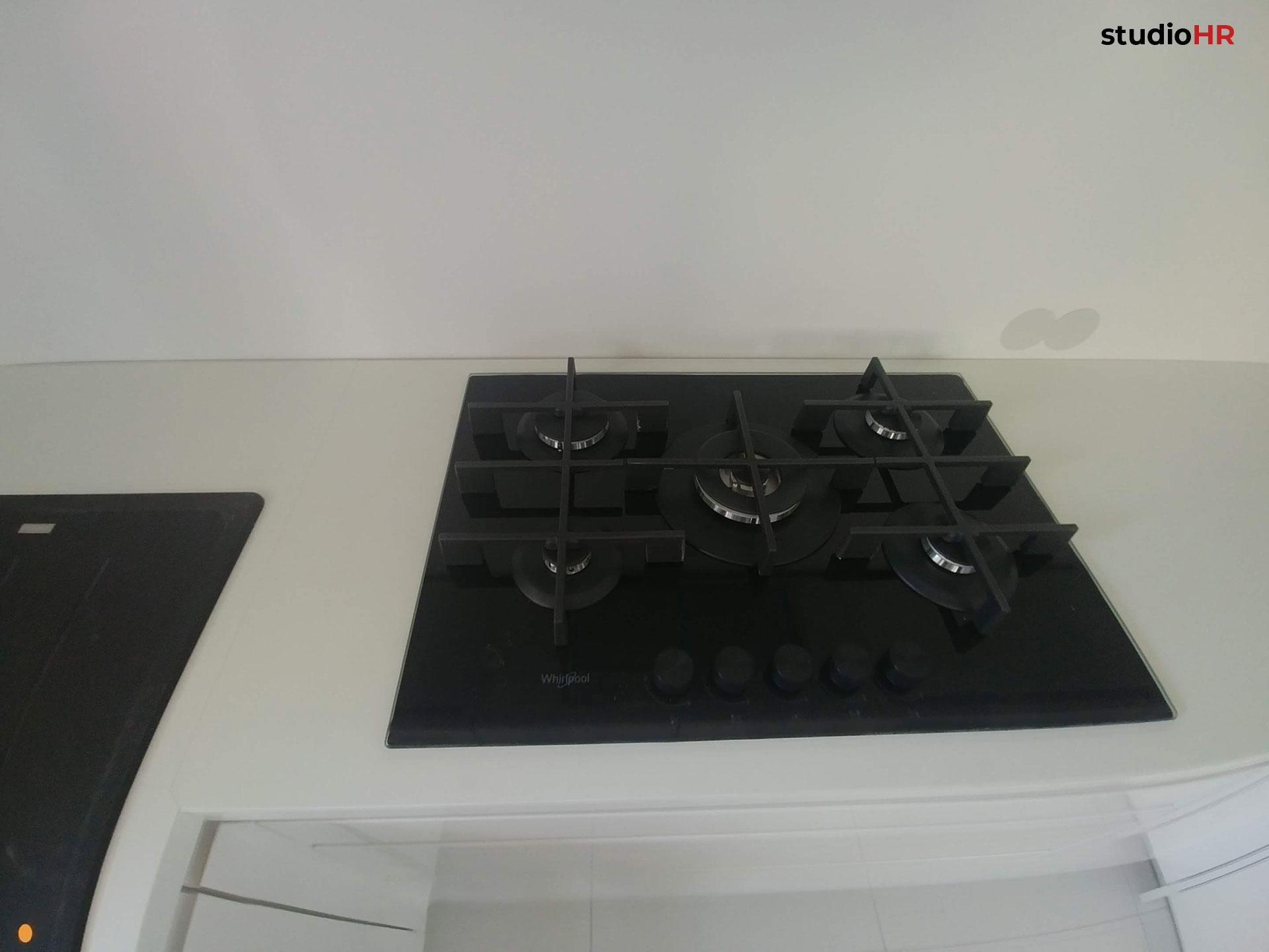 U kuhinju su integrirani ugradbeni kućanski aparati, čime se postižu čiste linije i skladna cjelina bez vizualnih prekida. Položaj aparata planiran je prema pravilima ergonomije, s naglaskom na sigurnost, jednostavnost korištenja i logičan slijed radnih procesa.